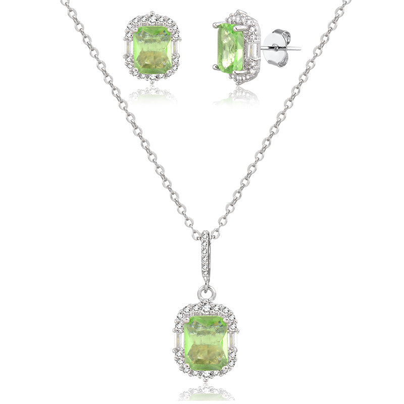 Conjunto retangular maça verde com entorno cravejado e banho de ródio branco