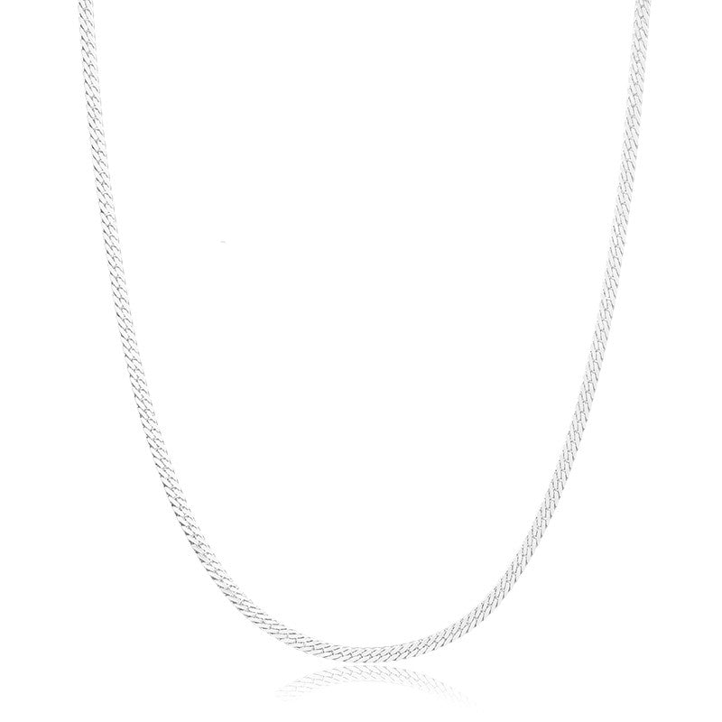 Colar longo laminado trabalhado 2mm 60cm com banho de ródio branco