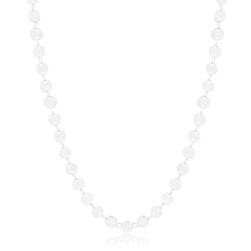 Este colar longo de 60 cm destaca-se pela delicada laminação trabalhada de 2 mm, que adiciona textura única e charme à peça. O banho de ródio branco intensifica o brilho, garantindo durabilidade e sofisticação. Uma escolha perfeita para valorizar seu visual com elegância e modernidade.