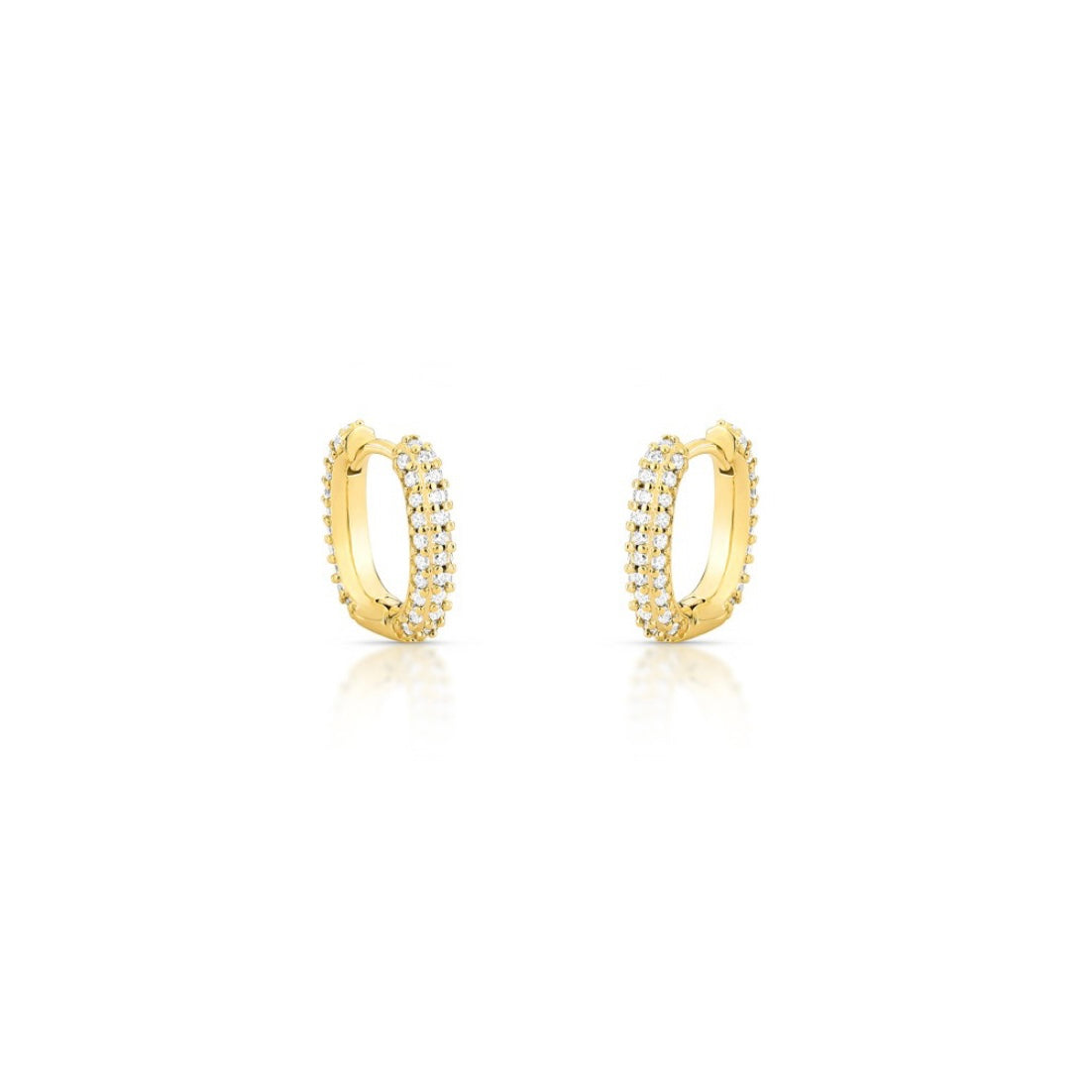 Brinco argolinha cravejada retangular M com banho de ouro 18k