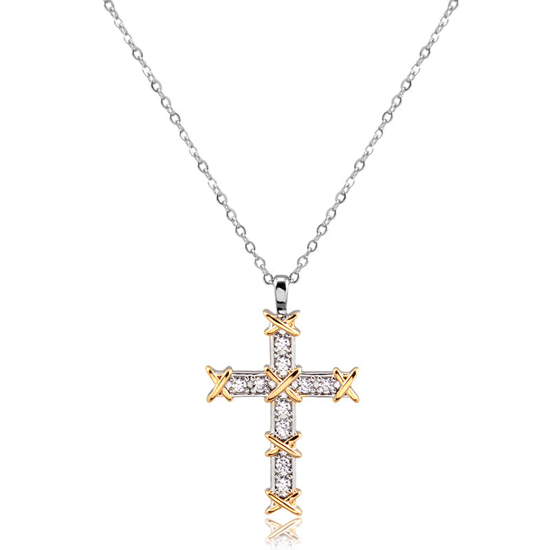 Colar crucifixo cravejado detalhe X dourado e banho de ródio branco