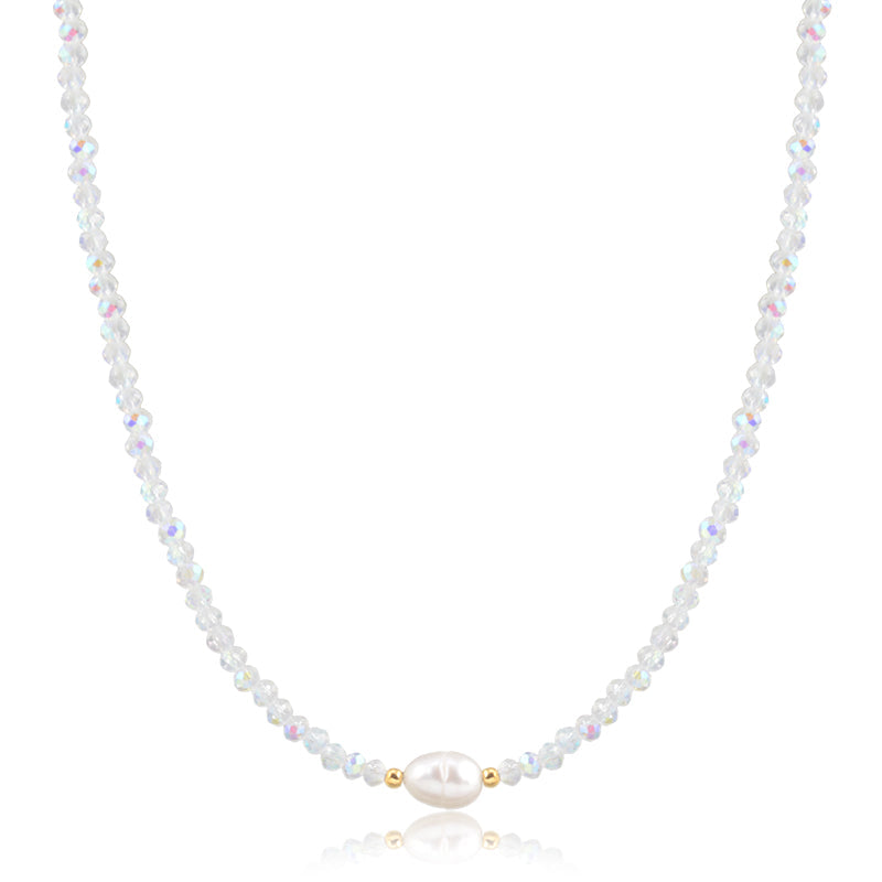 Colar choker cristais furta cor com pérola com banho de ouro 18k