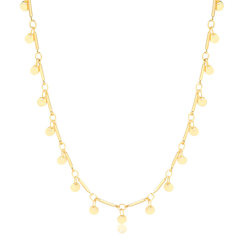 Colar choker medalhas e canutilhos com banho de ouro 18k