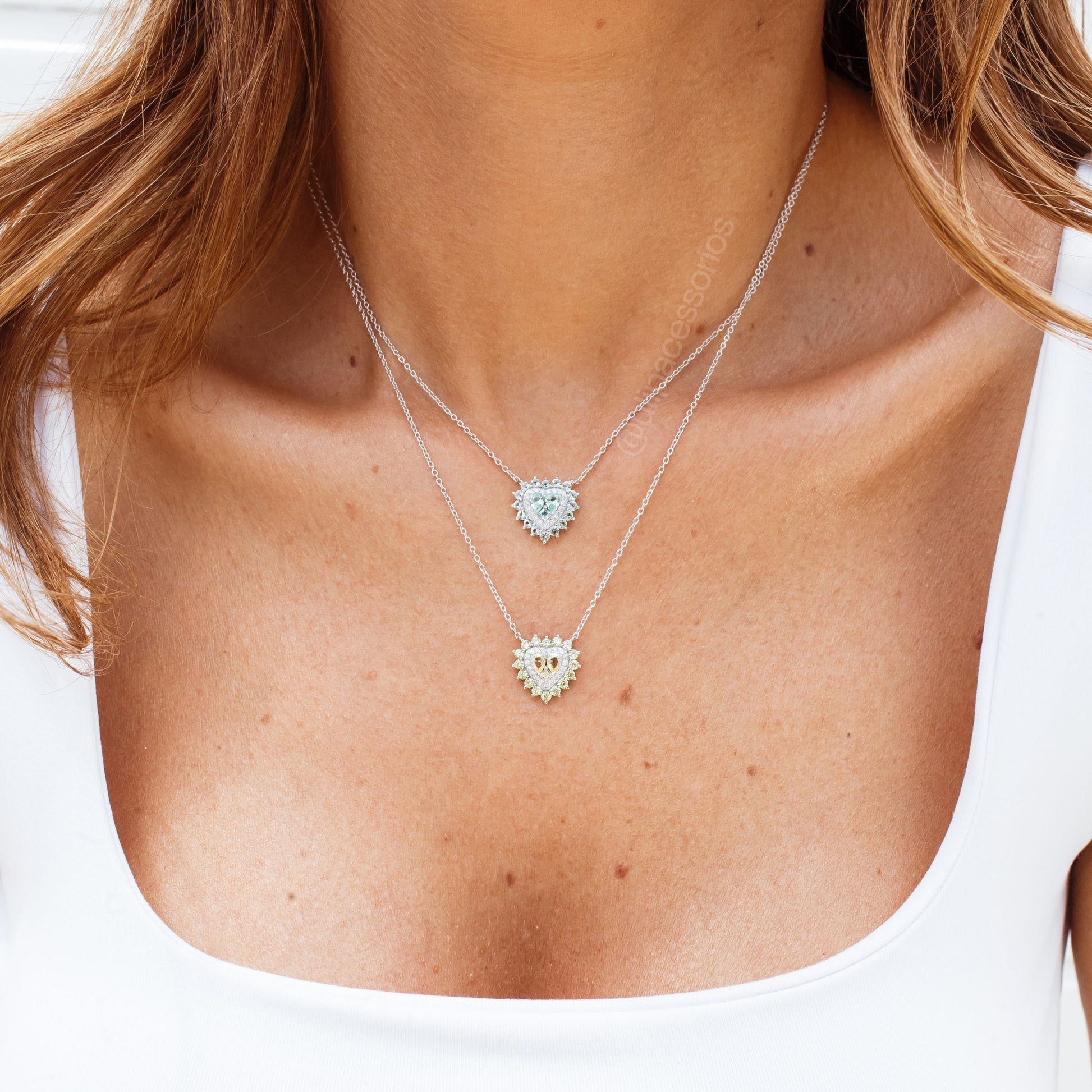Colar prata 925 coração turmalina clara