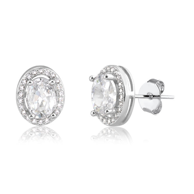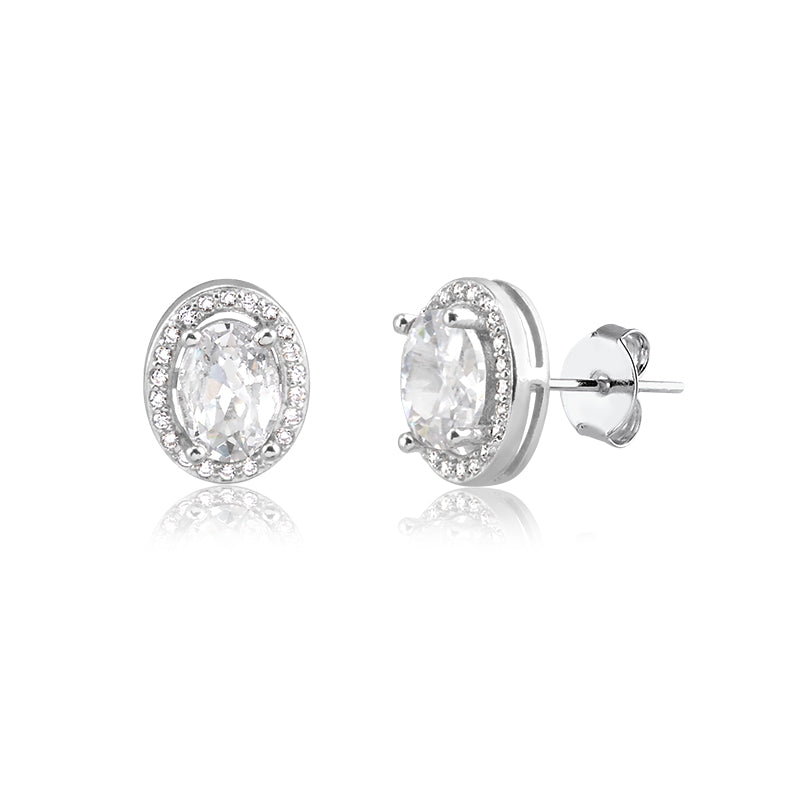 Brinco oval menor com zircônia cristal entorno cravejado com banho de ródio branco