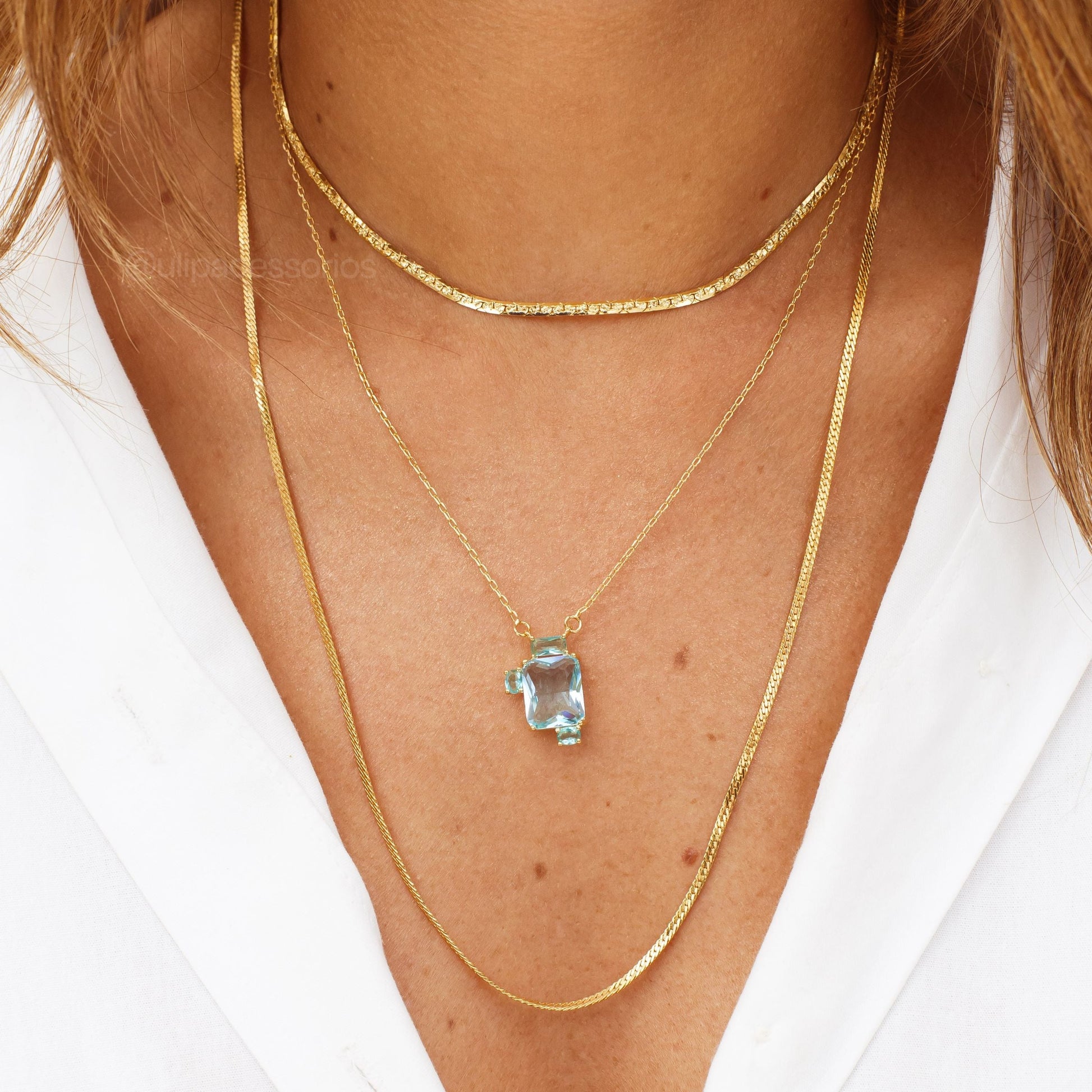 Colar longo laminado trabalhado 2mm 60cm com banho de ouro 18k