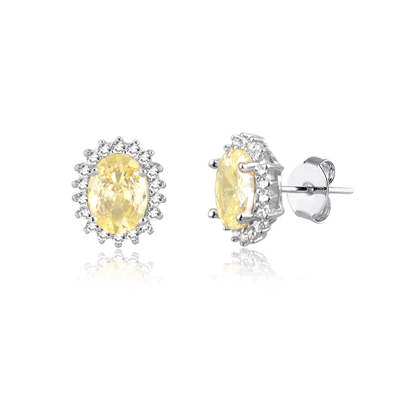Brinco oval citrino entorno cravejado com banho de ródio branco