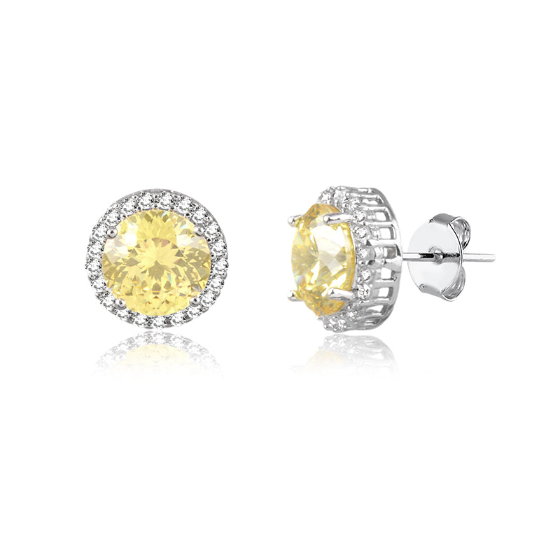 Brinco redondo citrino entorno cravejado com banho de ródio branco