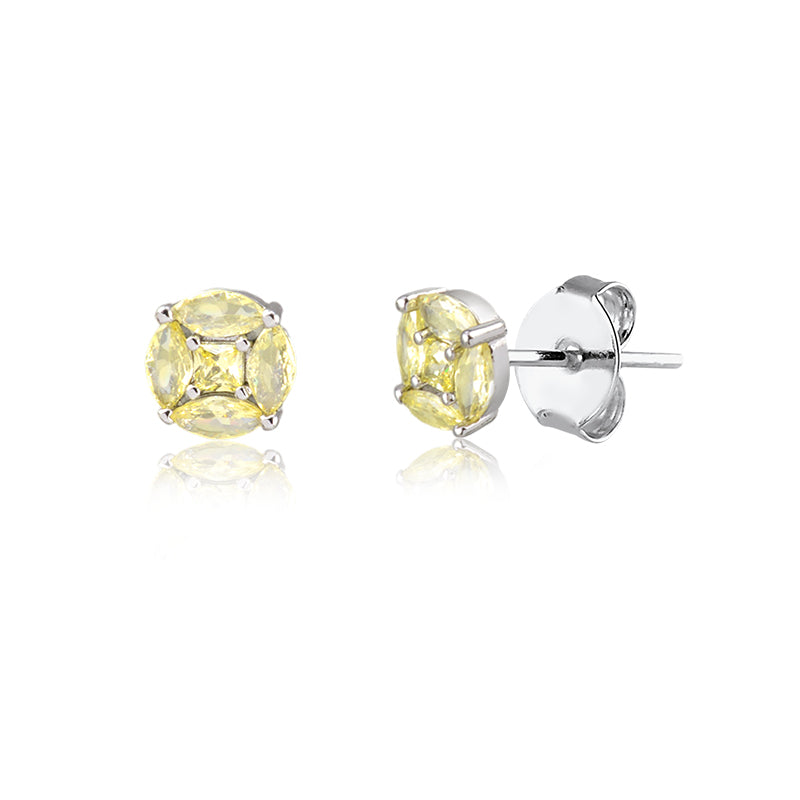 Brinco redondo navetes zircônia citrino com banho de ródio branco