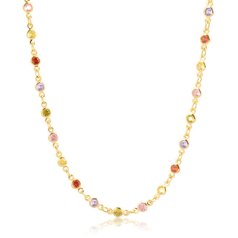 Colar choker pontos de luz coloridos com banho de ouro 18k