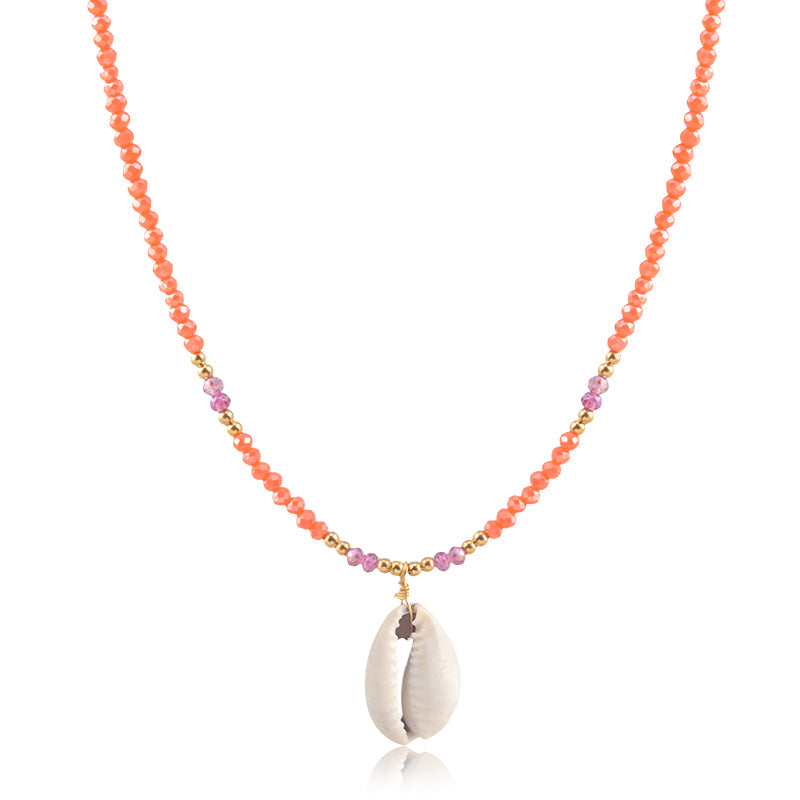 Colar choker cristais laranja buzio com banho de ouro 18k