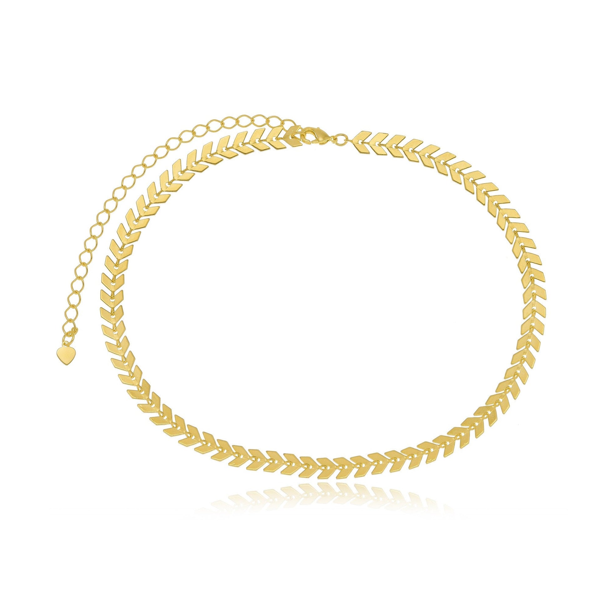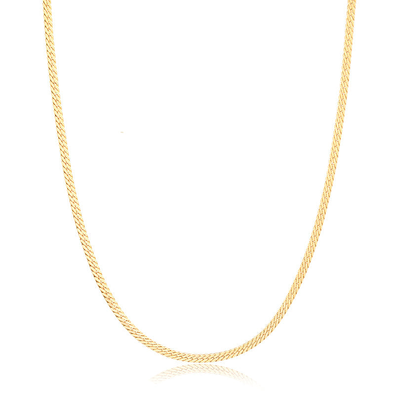 Colar longo laminado trabalhado 2mm 60cm com banho de ouro 18k