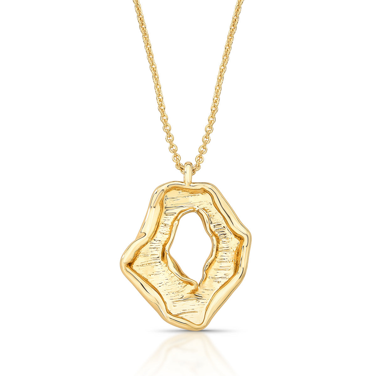 Colar longo com pingente orgânico vazado e banho de ouro 18k