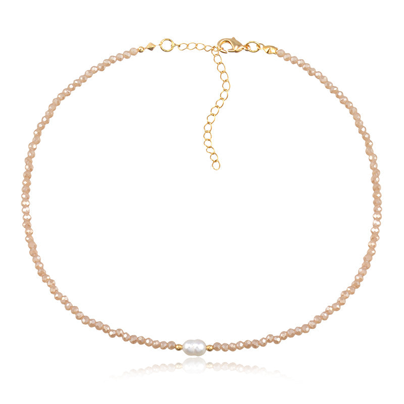 Colar choker cristais champanhe com pérola com banho de ouro 18k