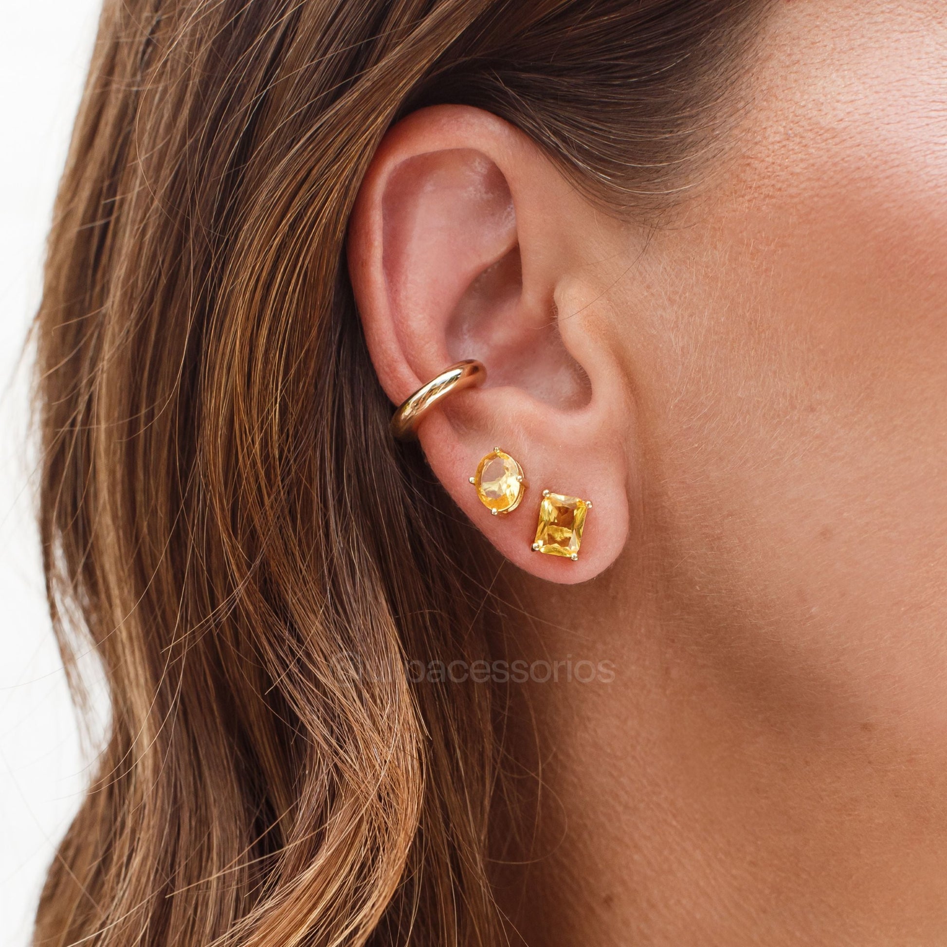 Brinco oval citrino power com banho de ouro 18k