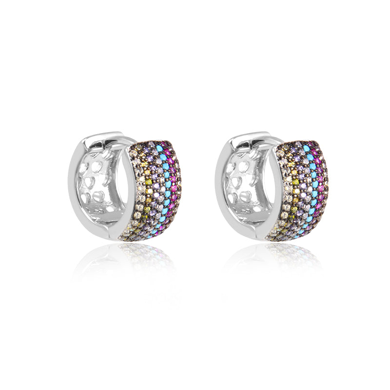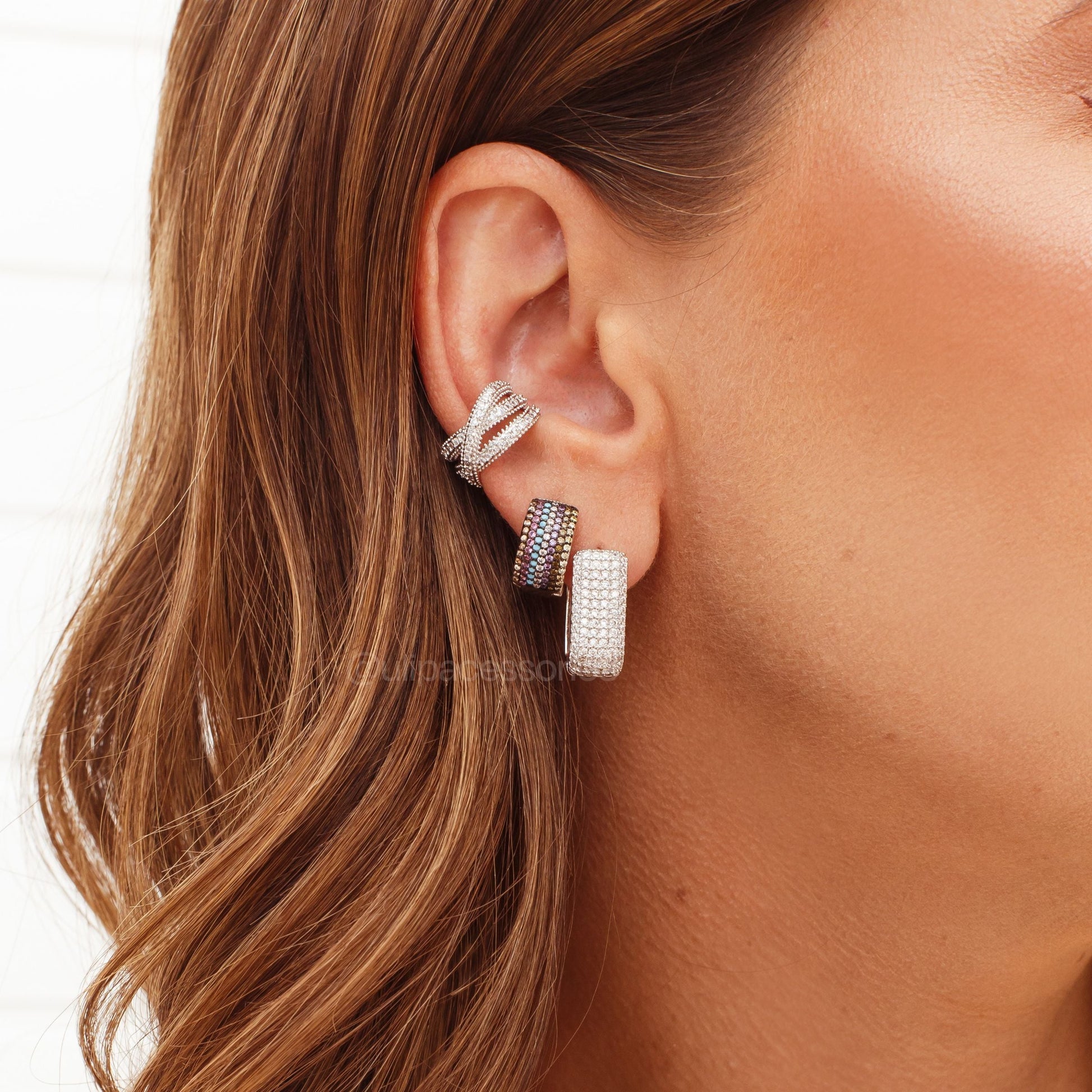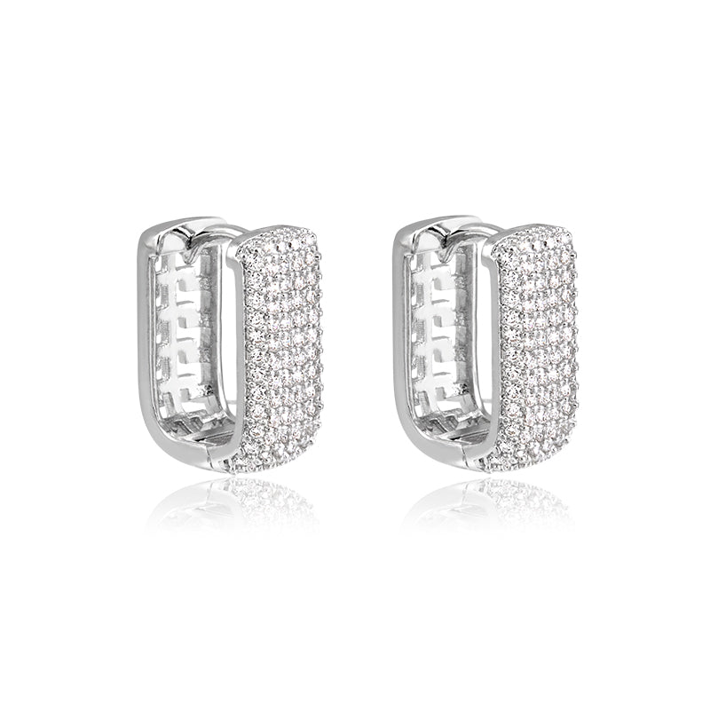 Brinco argola retangular larga cravejada luxo com banho de ródio branco