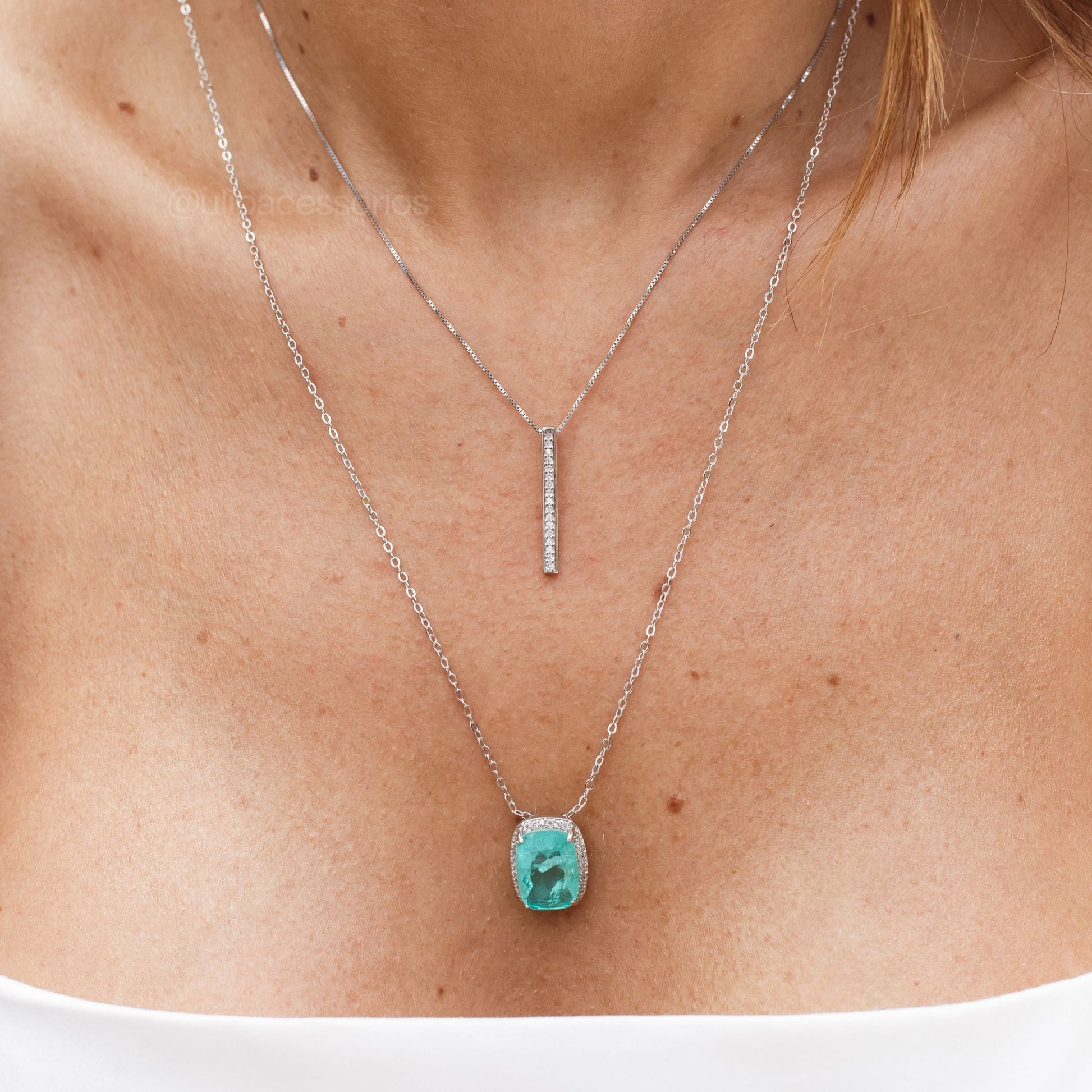 Colar palito cravejado com corrente em prata 925