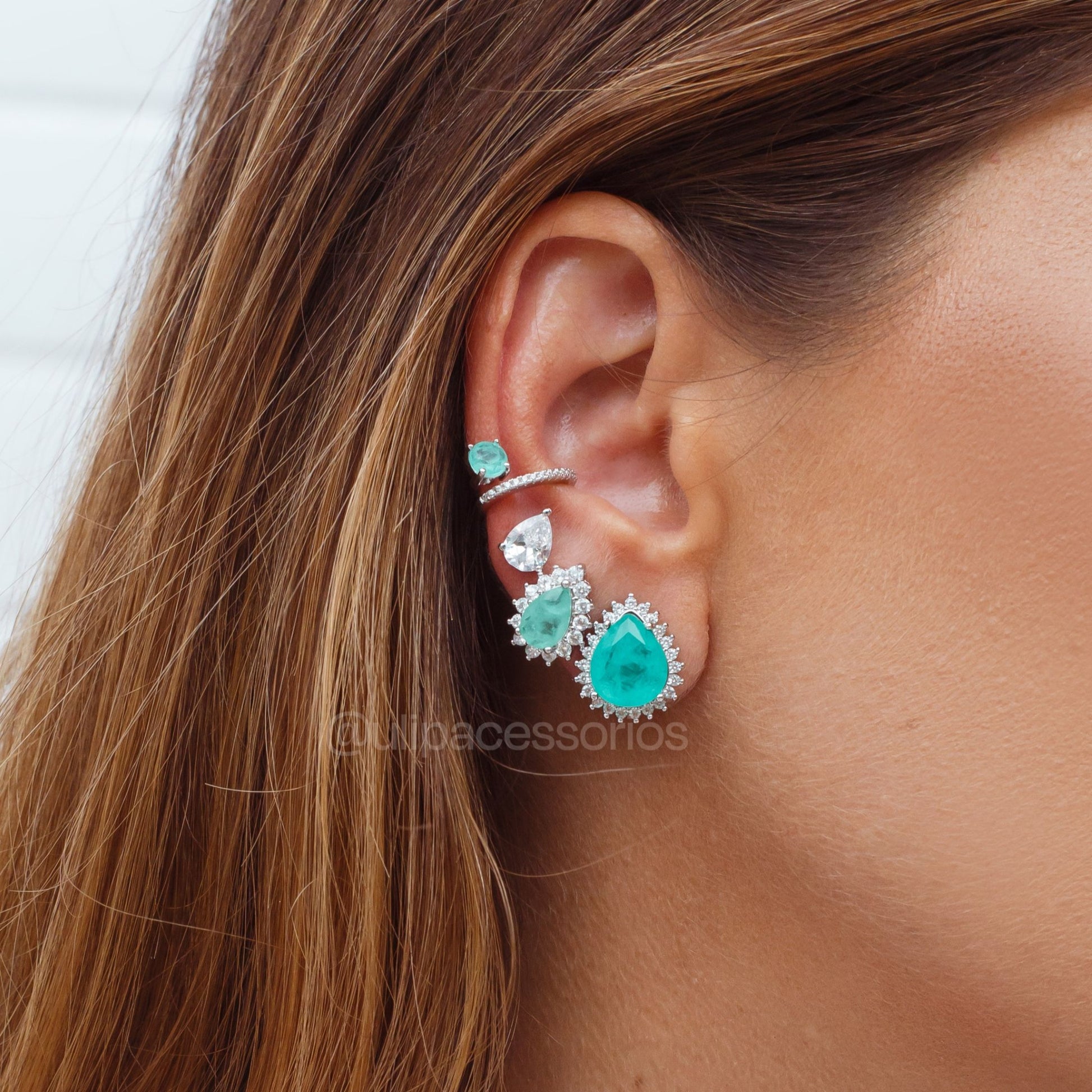 Piercing que exala luxo e refinamento. Combina uma zircônia esmeralda colombiana oval genuína com uma linha cravejada em zircônia, criando um efeito luminoso irresistível. O acabamento em ródio branco proporciona durabilidade excepcional e um brilho que não desvanece. Este acessório é a escolha perfeita para quem valoriza qualidade premium e deseja um piercing que se destaca pela elegância atemporal e sofisticação incomparável.