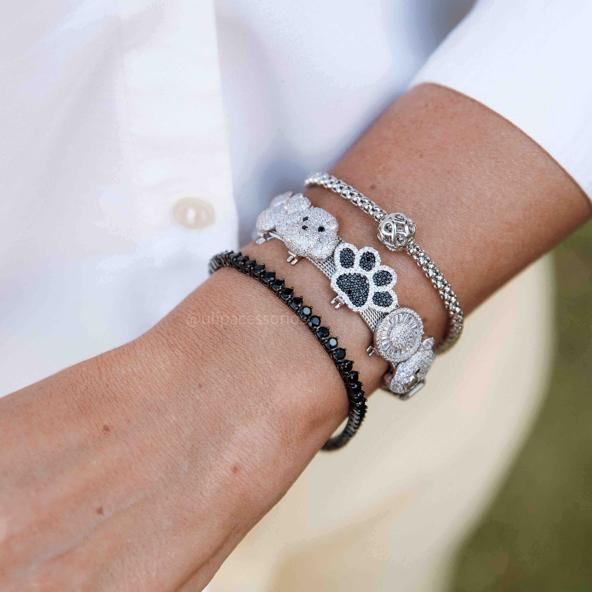 Este pingente em formato de pata, com banho de ródio branco, é o detalhe perfeito para sua pulseira esteira. Seu acabamento brilhante e resistente valoriza qualquer combinação, trazendo um toque delicado e sofisticado ao seu visual. Ideal para quem busca um acessório que une estilo e personalidade com qualidade duradoura.