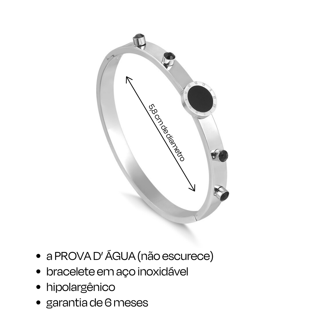 Esta pulseira bracelete em aço com detalhes em ovais pretos é a escolha perfeita para quem busca estilo e sofisticação. Seu design moderno e resistente valoriza qualquer look, oferecendo um toque elegante e contemporâneo. Ideal para usar no dia a dia ou em ocasiões especiais, combina durabilidade com um visual marcante que destaca sua personalidade.