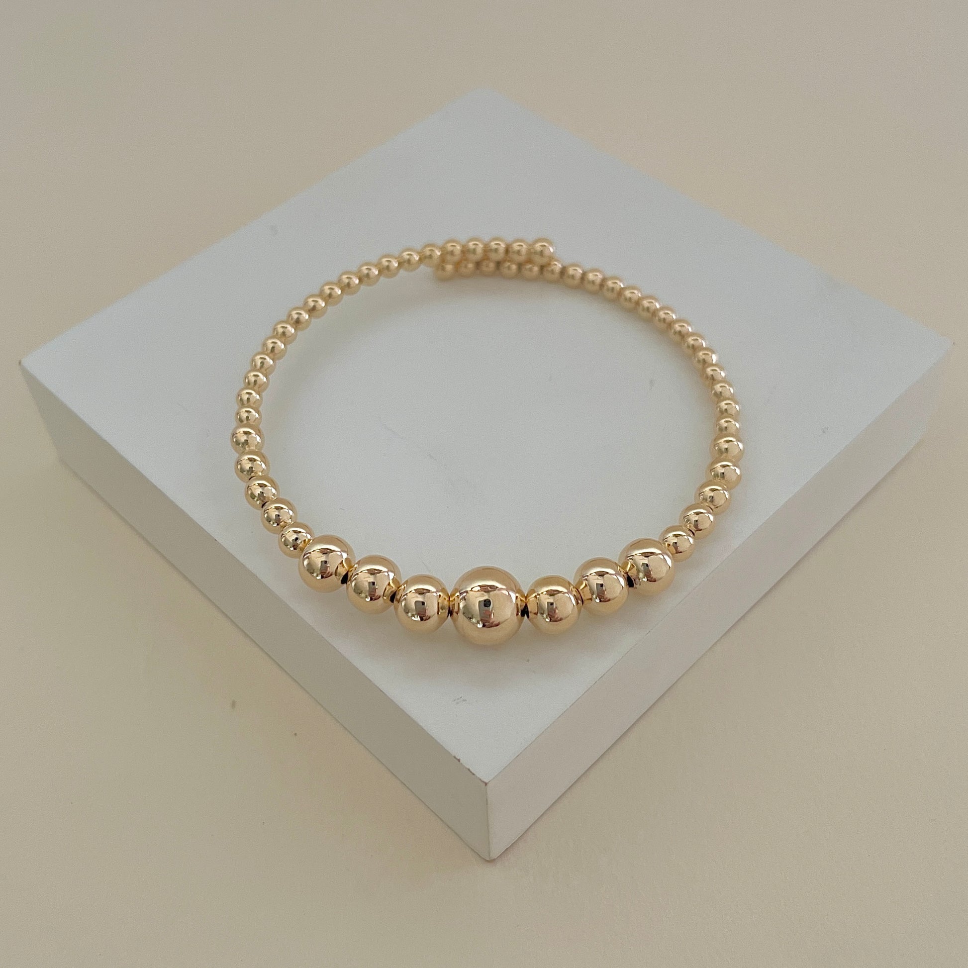 Esta pulseira bracelete maleável com esferas e banho de ouro 18k oferece conforto e estilo em um só acessório. Seu design flexível se ajusta facilmente ao pulso, enquanto as esferas delicadas adicionam um toque de sofisticação. Ideal para quem busca elegância diária com praticidade e brilho duradouro.