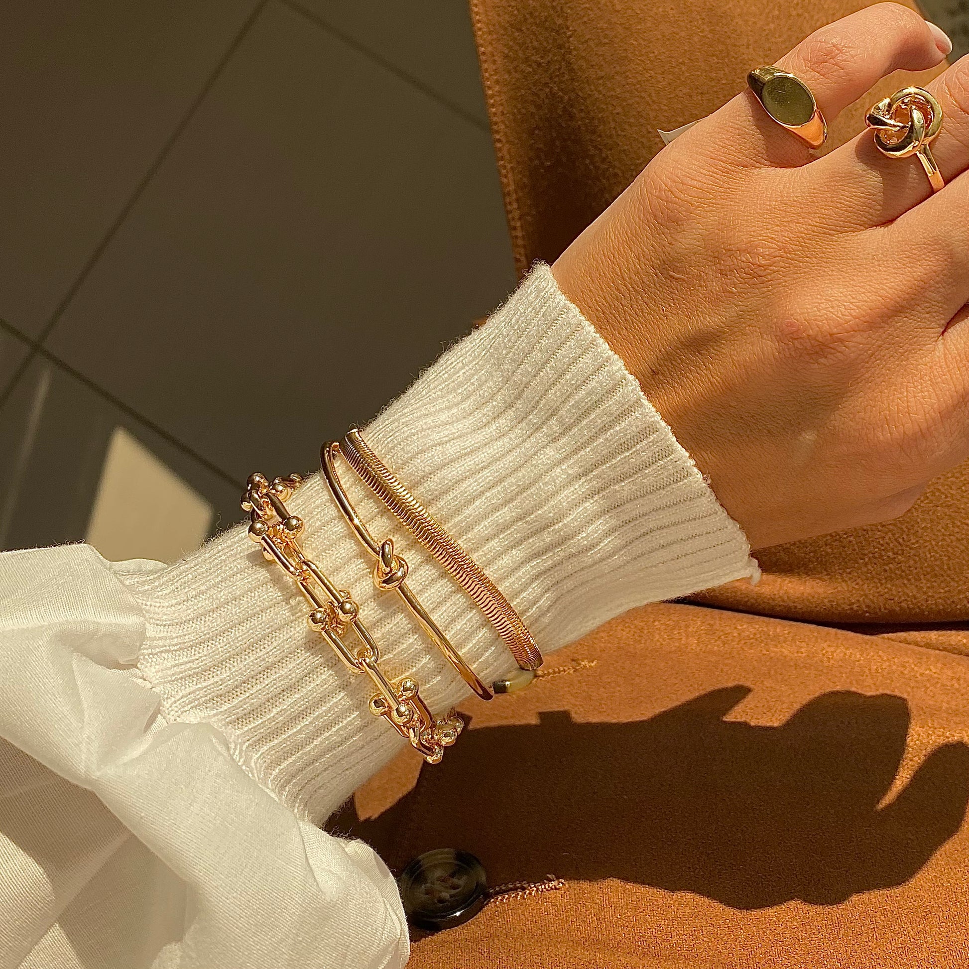 A pulseira bracelete nó liso com banho de ouro 18k é o acessório perfeito para quem busca sofisticação e estilo. Seu acabamento delicado e o brilho do ouro realçam qualquer visual, proporcionando um toque de elegância e modernidade. Ideal para ocasiões especiais ou para valorizar o dia a dia com um detalhe marcante.