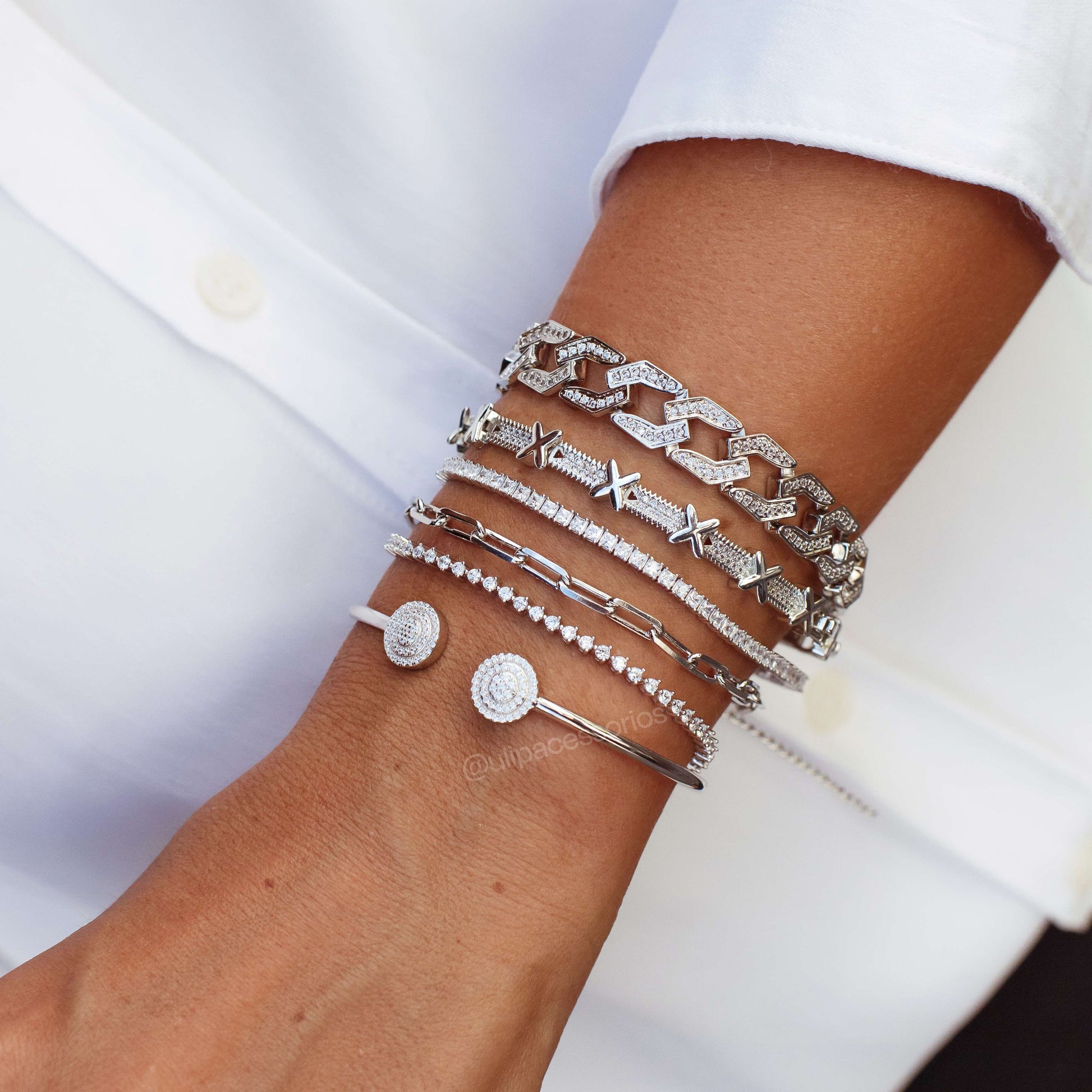 A pulseira elos Cartier com banho de ródio branco combina elegância e durabilidade, oferecendo um acabamento sofisticado que realça qualquer visual. Seu design clássico e versátil é perfeito para ocasiões especiais ou para o dia a dia, garantindo um toque de luxo discreto e moderno. Ideal para quem busca estilo e qualidade em um acessório atemporal.