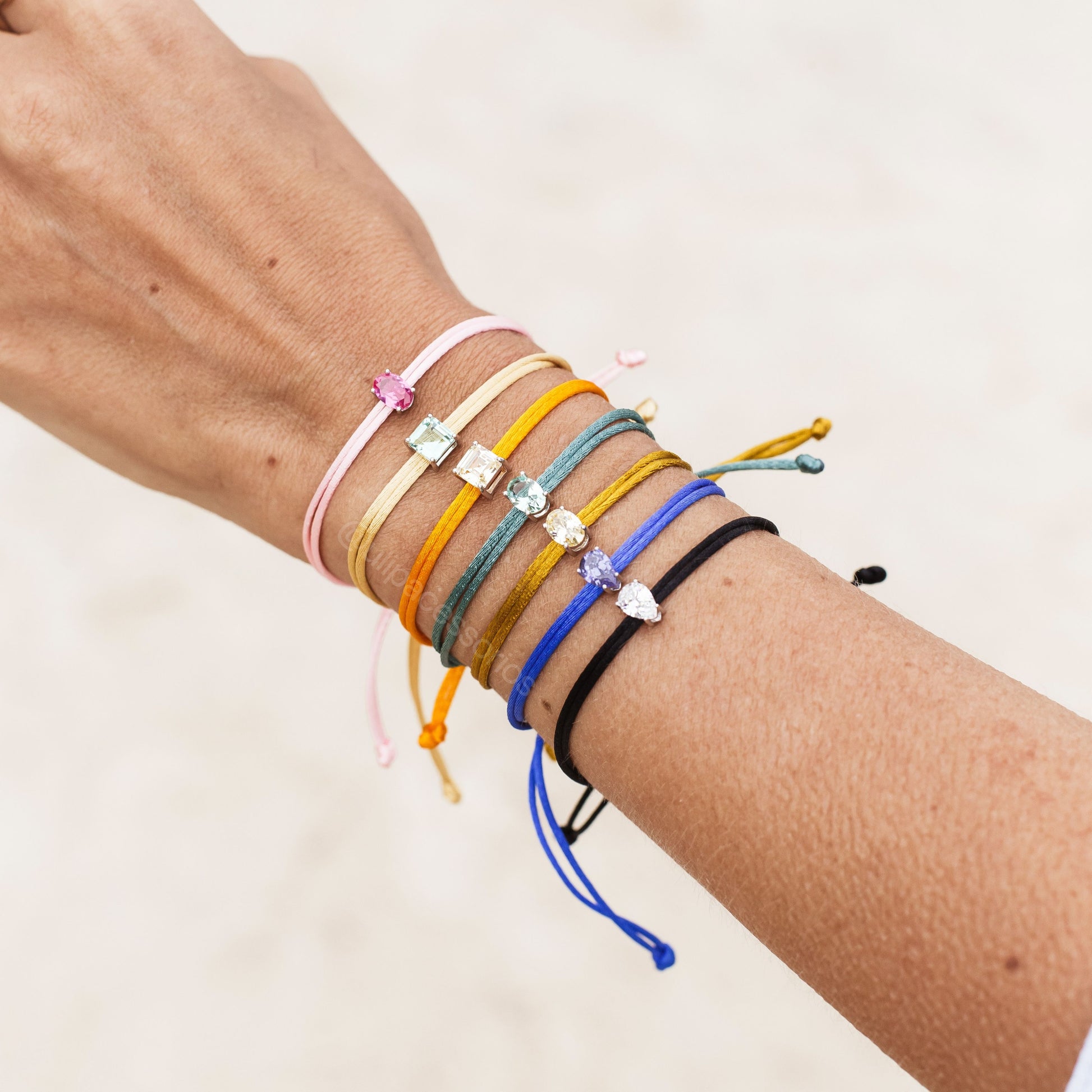 Pulseira delicada em fio encerado na cor rosa que combina sofisticação e versatilidade. Apresenta um elegante pingente em formato de oval com zircônia rosa brilhante e prata 925, que reflete luz de forma deslumbrante. O design ajustável permite um ajuste perfeito ao seu pulso, garantindo conforto durante todo o dia. Ideal para quem busca um acessório que transita entre o casual e o sofisticado, complementando qualquer look com um toque de brilho e elegância.
