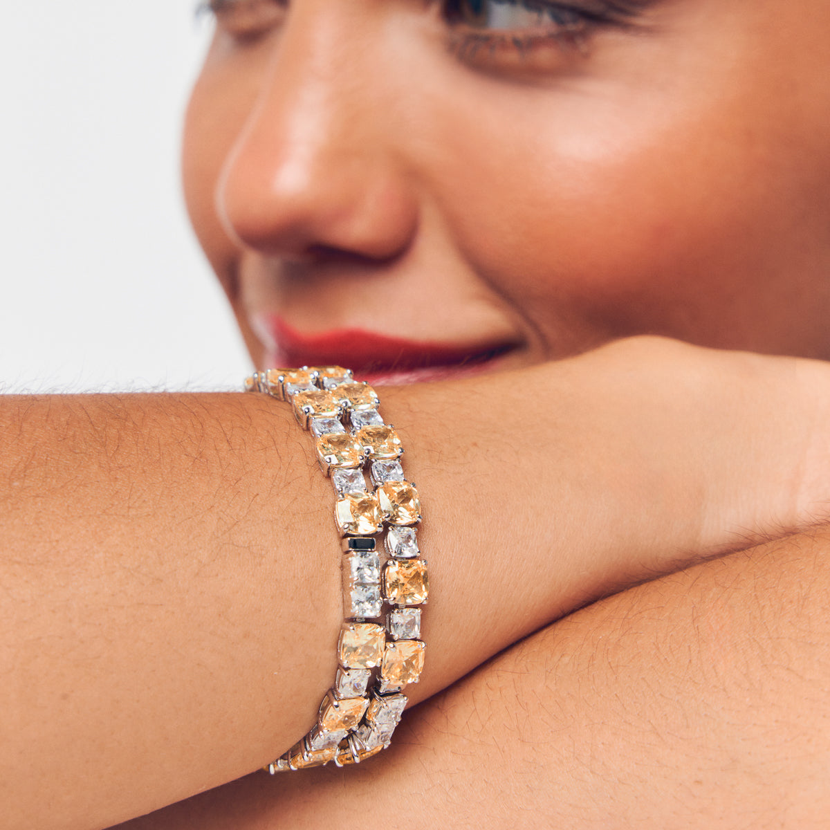 Encante-se com a Pulseira Fran Riviera, delicadamente confeccionada em prata 925 e adornada com zircônias citrino e cristal. Seu brilho sofisticado realça qualquer look, trazendo elegância e um toque de cor vibrante. Perfeita para quem busca um acessório versátil que une beleza e qualidade, ideal para ocasiões especiais ou para o dia a dia com estilo.