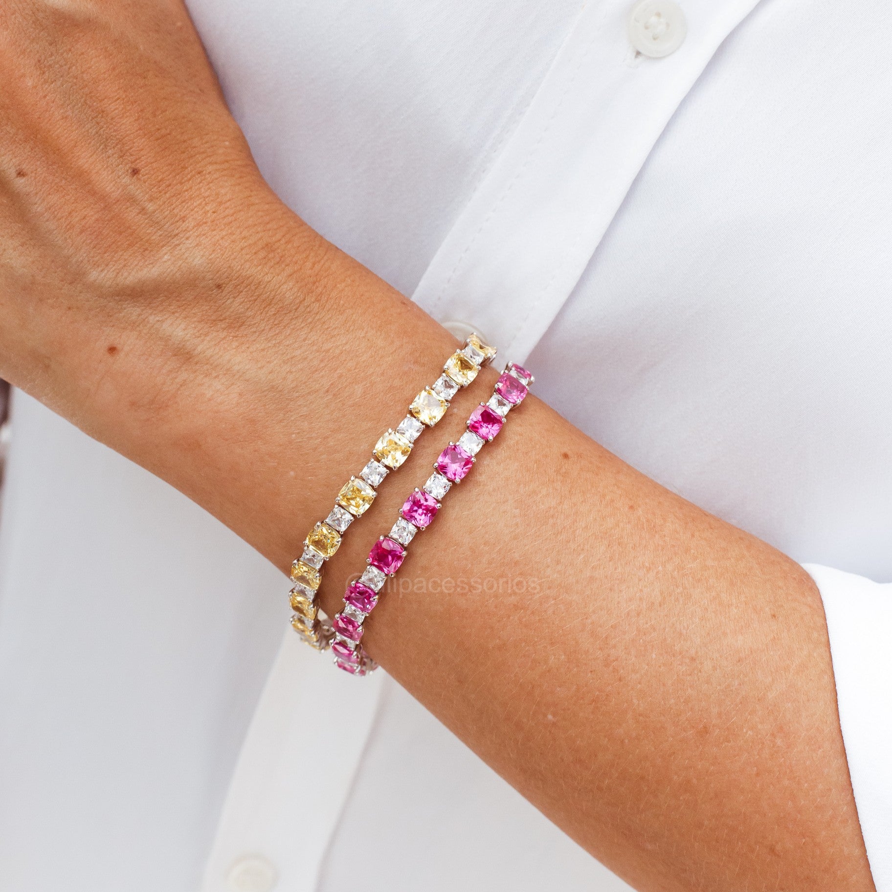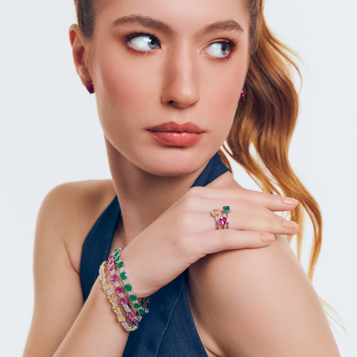 Deslumbre com a Pulseira Fran Riviera, uma peça irresistível em prata 925 que combina o brilho intenso das zircônias cristal com o encanto delicado das turmalinas rosa. Cada pedra foi meticulosamente posicionada para criar um jogo de luz e cor que captura olhares por onde passa. Sofisticada e versátil, esta pulseira eleva instantaneamente qualquer visual, do dia a dia às ocasiões especiais. Um luxo acessível que reflete sua personalidade única e senso de estilo refinado.