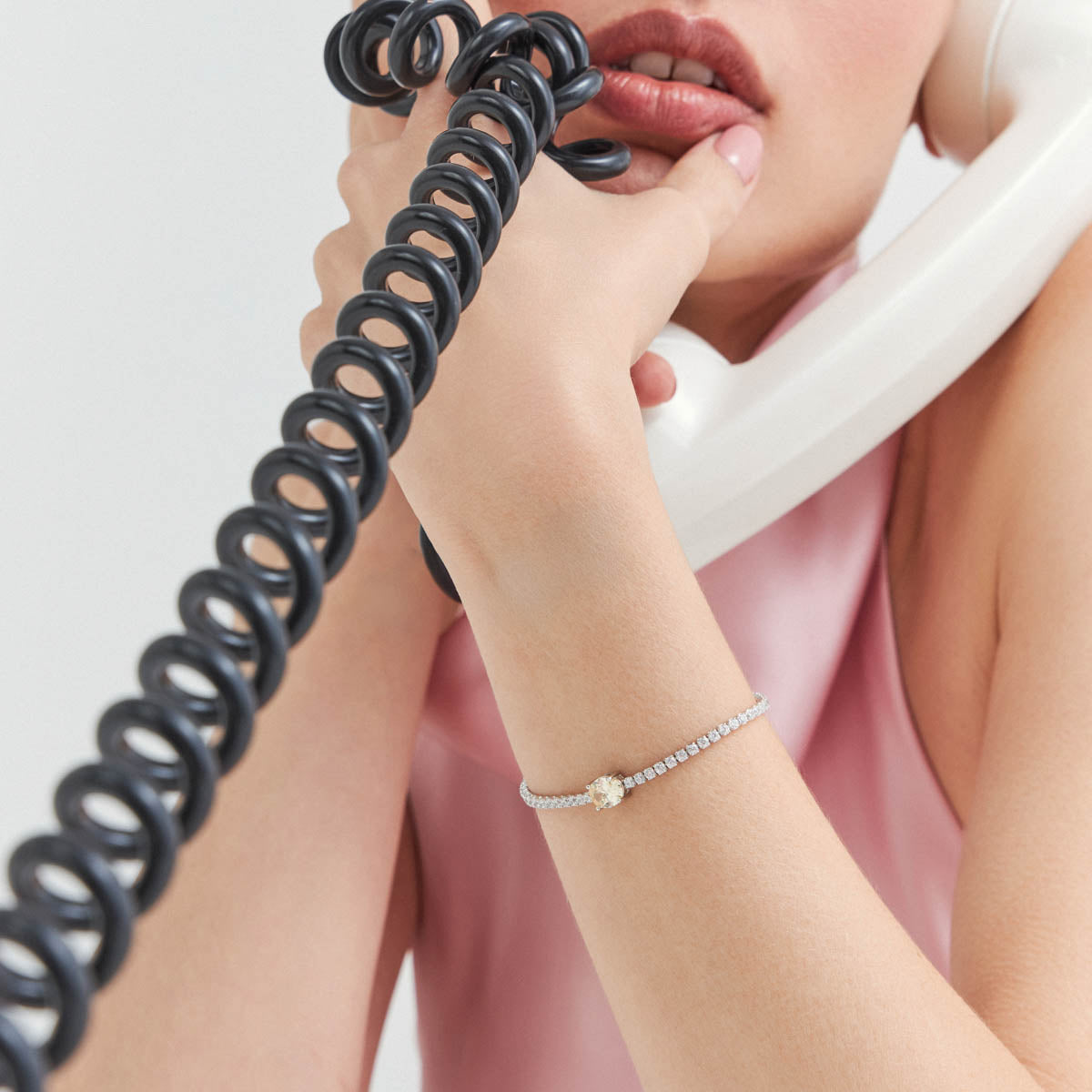 Pulseira em prata 925 com design riviera elegante, apresentando um oval de zircônia cítrina que oferece brilho excepcional e durabilidade. A zircônia cúbica proporciona o mesmo esplendor visual de uma pedra preciosa, com a vantagem de ser mais acessível e resistente ao uso diário. Perfeita para quem deseja um acessório sofisticado que combina qualidade, luminosidade e praticidade. Uma escolha inteligente para complementar seu estilo com elegância e confiança.
