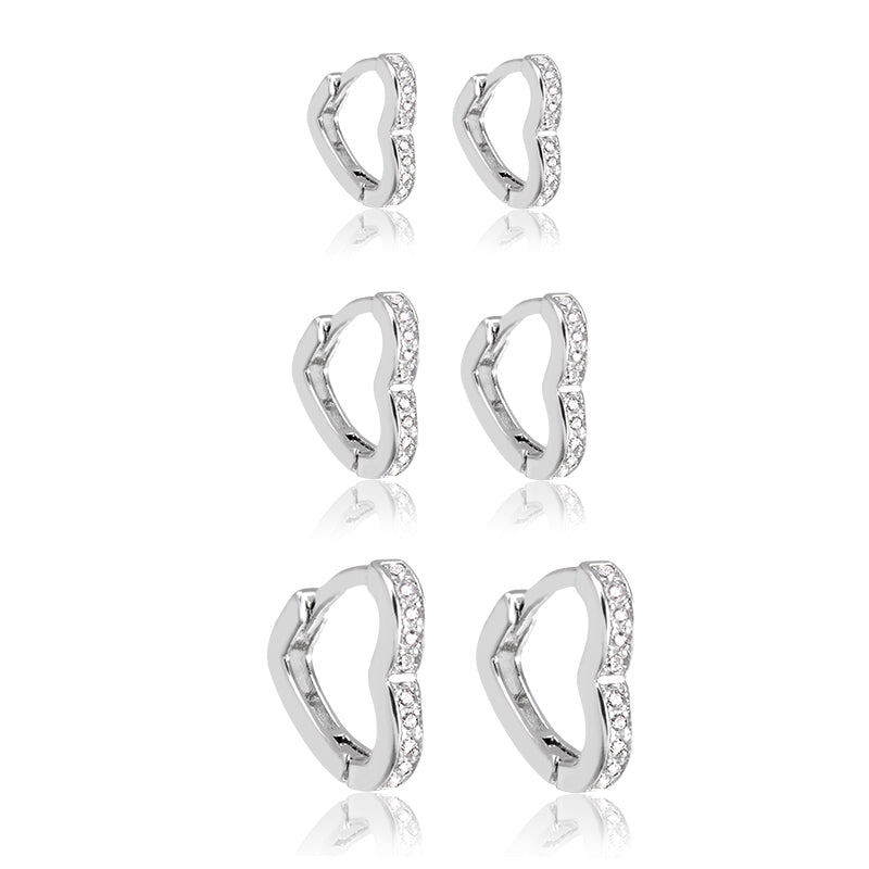 Realce sua beleza com este trio de brinco argolinhas em formato de coração cravejado, banhadas em ródio branco. O acabamento impecável oferece brilho intenso e resistência, enquanto o design delicado traz um toque romântico e moderno ao seu estilo. Versáteis e elegantes, esses brincos são ideais para complementar qualquer look com sofisticação e charme diário.